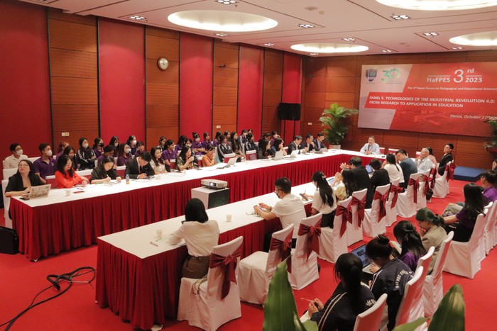 Các báo cáo về chủ đề "Những công nghệ của Cách mạng Công nghệ 4.0 từ những nghiên cứu đến ứng dụng trong giáo dục" nhận được sự quan tâm của nhiều nhà khoa học, các thầy cô, nghiên cứu sinh, học viên và sinh viên Khoa Công nghệ Giáo dục, Trường Đại học Giáo dục, Đại học Quốc gia Hà Nội. Ảnh: NTCC.