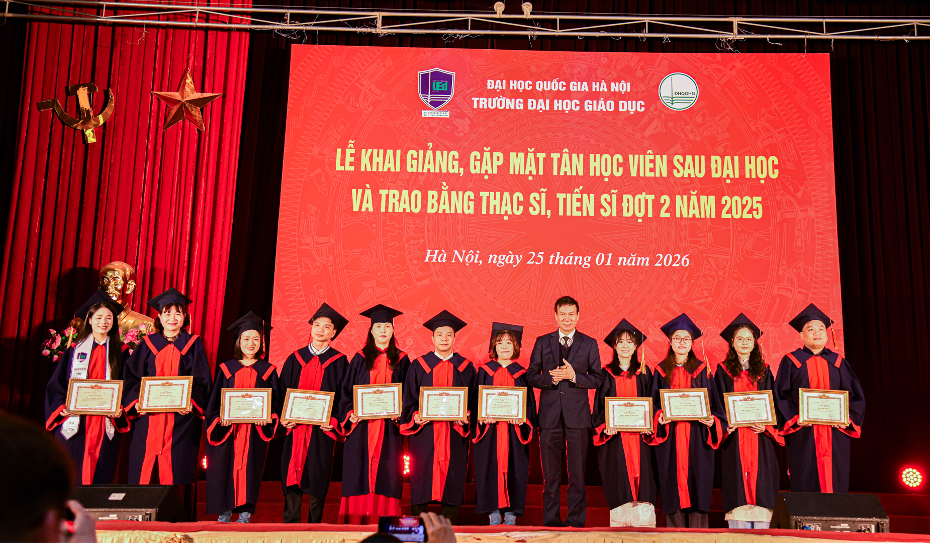 Tham dự buổi lễ có TS. Nguyễn Đức Huy – Bí thư Đảng ủy, Phó Hiệu trưởng trường Đại học Giáo dục cùng đại diện lãnh đạo TT Hợp tác Đào tạo và Bồi dưỡng, đại diện lãnh đạo phòng Đào tạo.