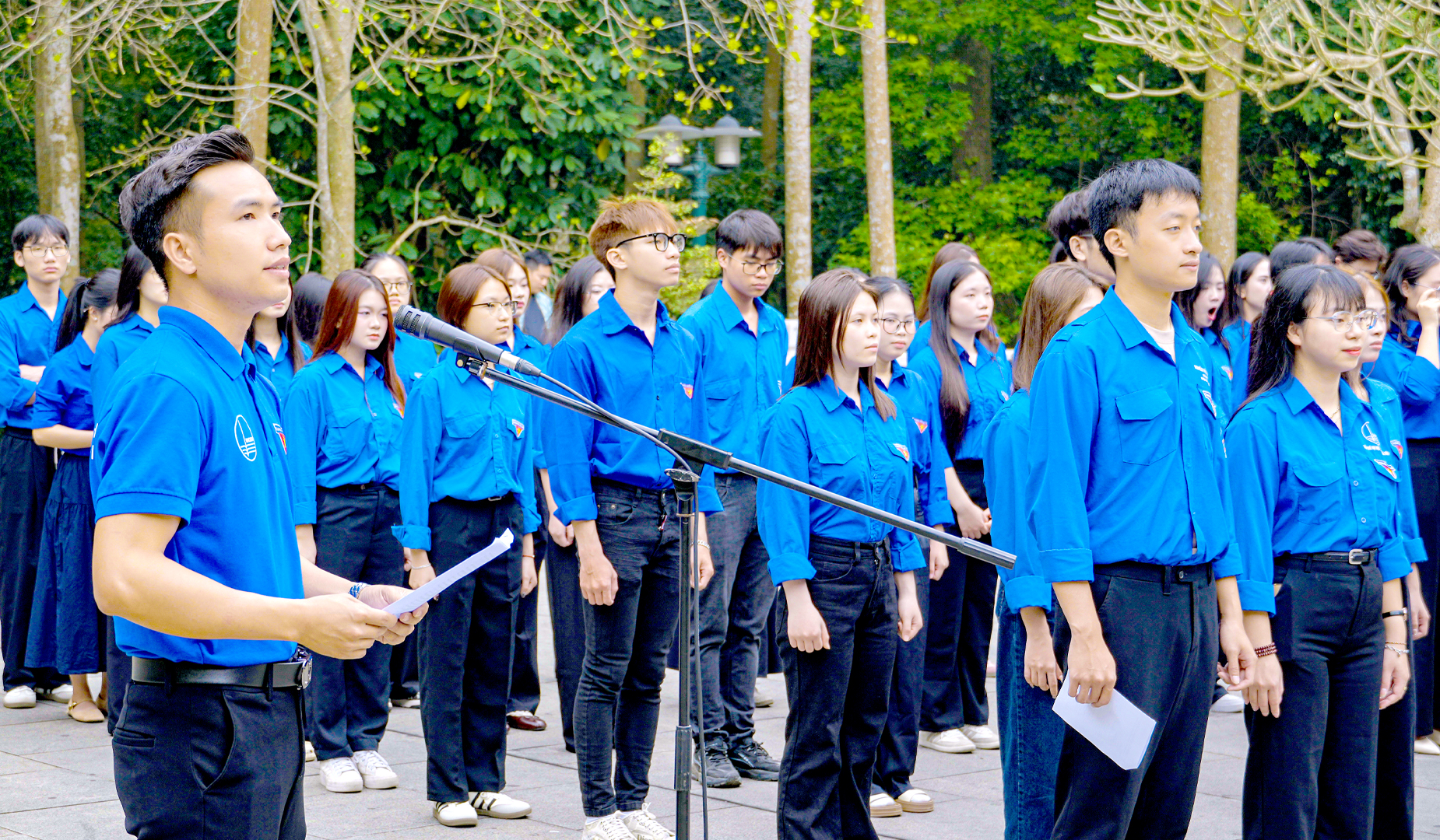 Đồng chí Nguyễn Văn Hưng - Bí thư Đoàn Thanh niên Trường Đại học Giáo dục phát biểu tại buổi lễ phát động