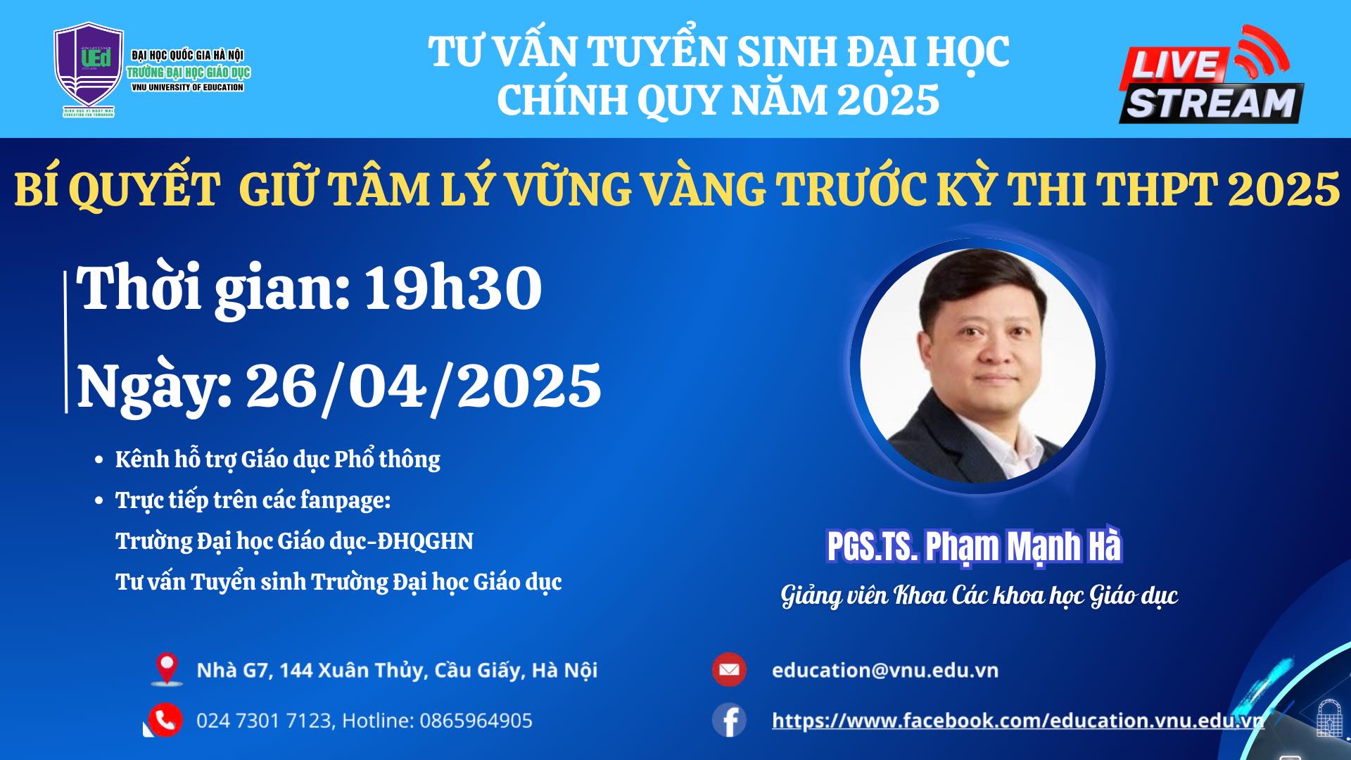 Livestream đặc biệt về tư vấn tâm lý, hướng tới mục tiêu đồng hành tinh thần với học sinh trong giai đoạn nhiều áp lực. Các chuyên gia tâm lý học đến từ Trường Đại học Giáo dục đã chia sẻ về những biểu hiện lo âu thường gặp, cách kiểm soát cảm xúc tiêu cực và phương pháp thư giãn trước ngày thi. Đặc biệt, chương trình còn nhận được sự tương tác tích cực từ phụ huynh, thể hiện sự quan tâm sâu sắc của toàn xã hội đối với sức khỏe tinh thần của học sinh.