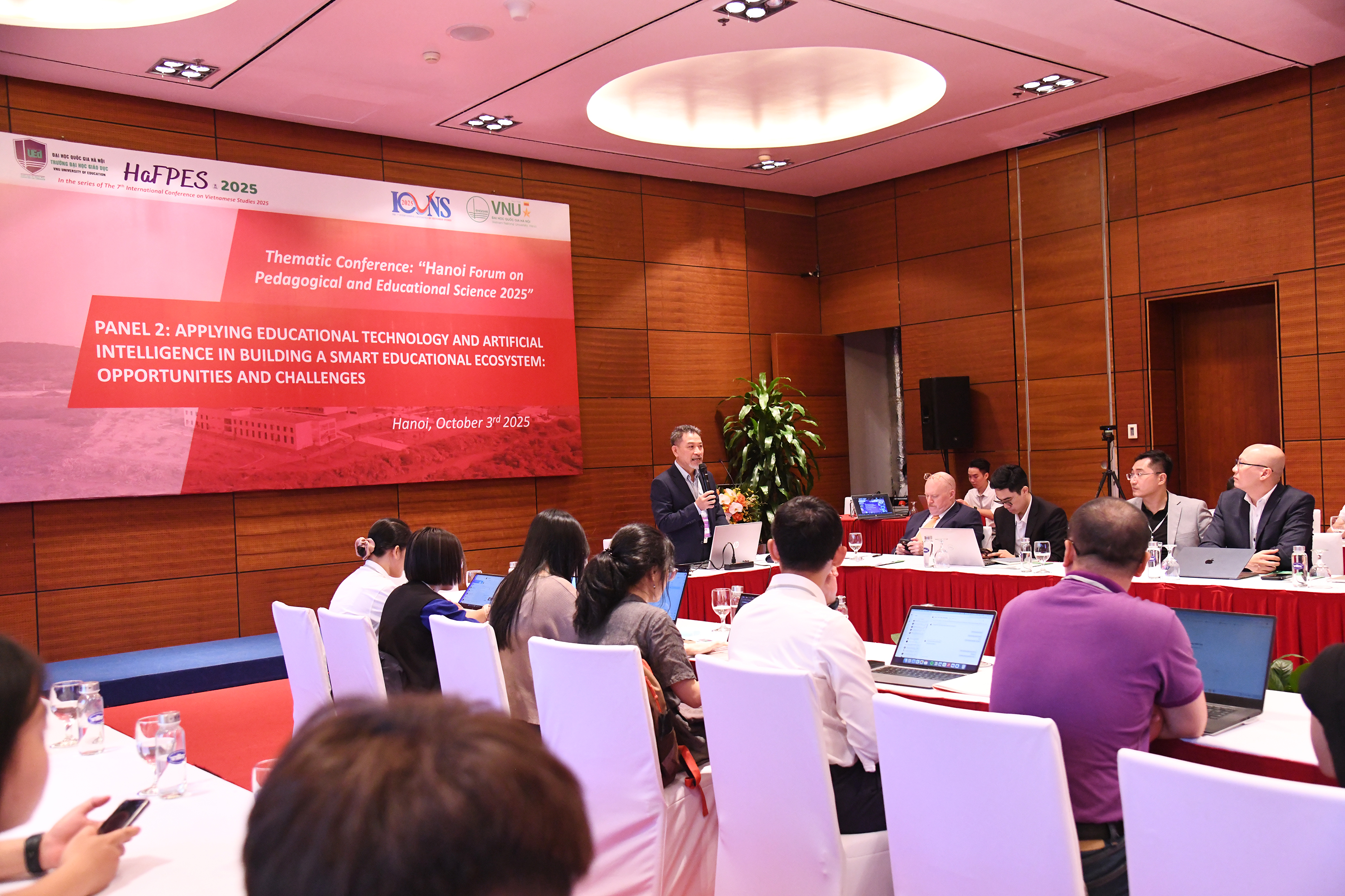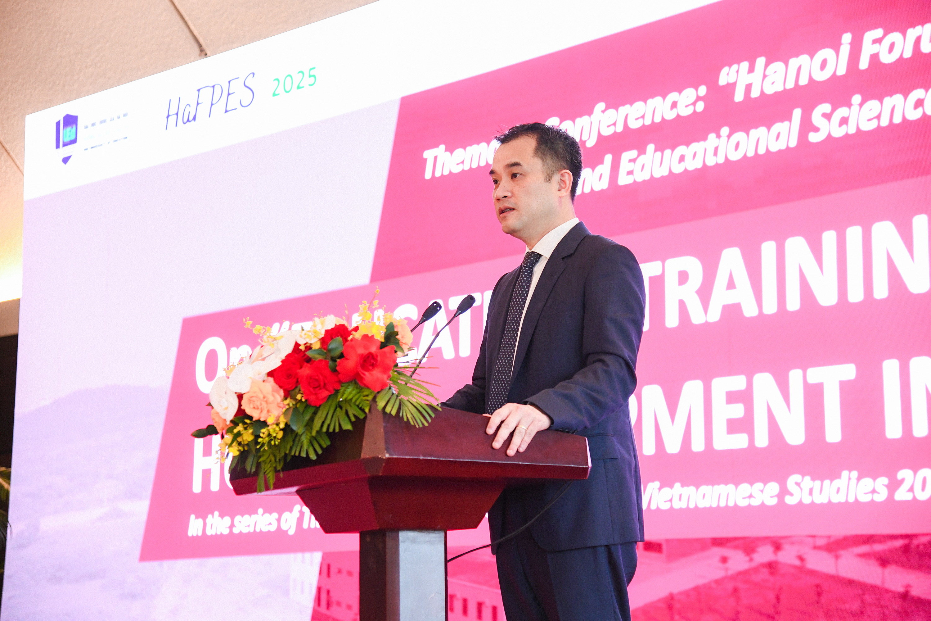 Phát biểu tại Diễn đàn, PGS.TS. Phạm Bảo Sơn – Phó Giám đốc ĐHQGHN khẳng định HaFPES sau 5 năm tổ chức đã trở thành diễn đàn học thuật uy tín, quy tụ đông đảo học giả trong và ngoài nước. Năm nay, Trường Đại học Giáo dục nhận hơn 200 báo cáo, trong đó 150 báo cáo được duyệt đăng và 60 báo cáo trình bày tại các phiên toàn thể và song song. Diễn đàn có sự tham gia của nhiều chuyên gia quốc tế đến từ Hoa Kỳ, Úc, Nga, Ấn Độ, Đài Loan, Malaysia, Singapore… cùng đại diện các bộ, ngành, cơ sở giáo dục và doanh nghiệp EdTech, cho thấy sức hút và uy tín của HaFPES trong cộng đồng khoa học.