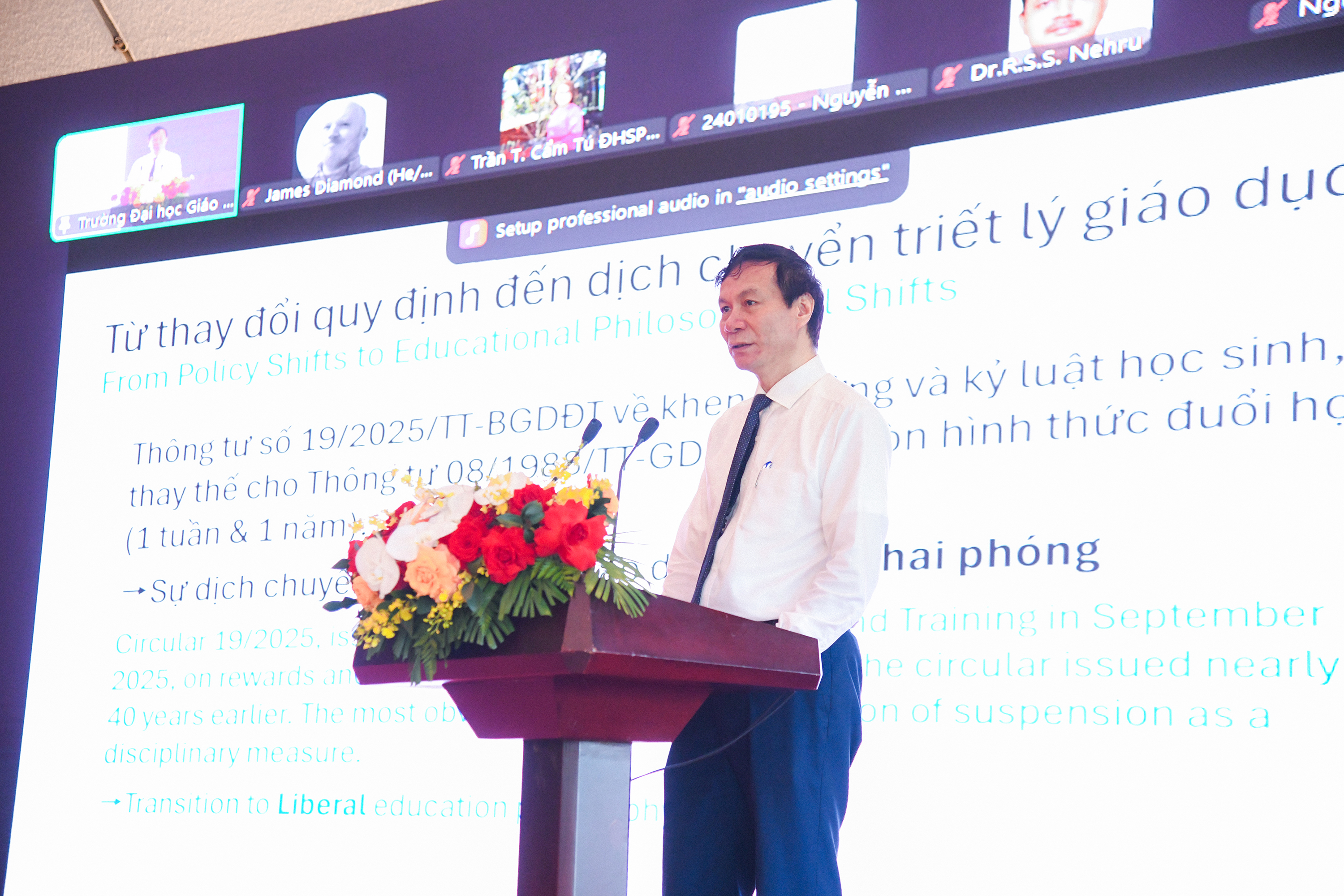 Các tham luận trong phiên buổi chiều tiếp tục mở rộng và đi sâu vào nhiều chủ đề trọng tâm: quản trị đại học trong bối cảnh toàn cầu hóa; xây dựng lớp học thông minh với AI và công nghệ giáo dục; phát triển năng lực tự học cho sinh viên trong kỷ nguyên số; bồi dưỡng năng lực AI cho giáo viên phổ thông; giáo dục sớm từ kinh nghiệm quốc tế (Phần Lan, Singapore, Hàn Quốc…); ứng dụng VR/AR trong nghiên cứu địa lý và giảng dạy; chăm sóc sức khỏe tinh thần trong giáo dục đại học; cùng những vấn đề đạo đức và hiệu quả khi ứng dụng AI trong kiểm tra, đánh giá.