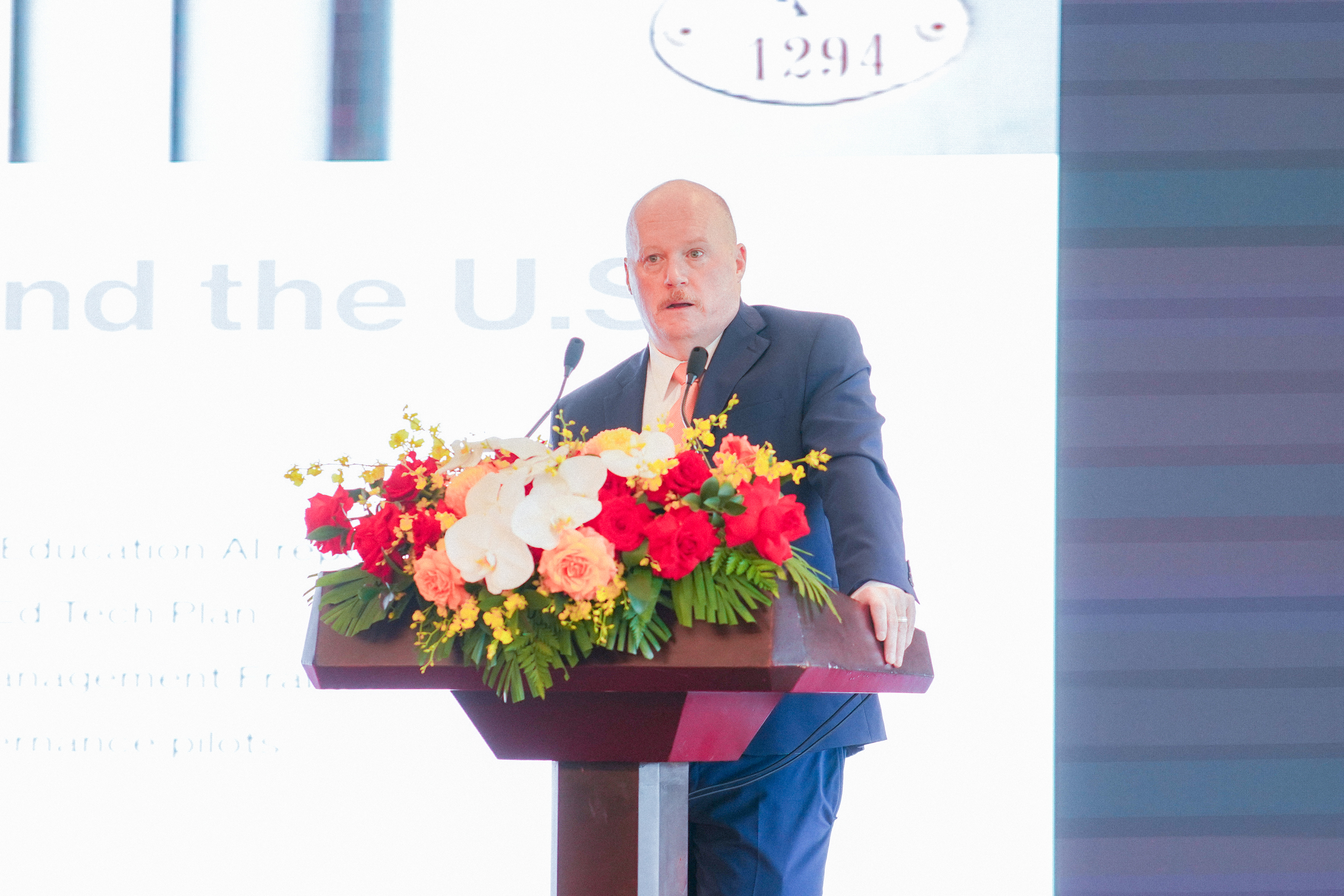 GS.TS. James Diamond (Đại học Johns Hopkins, Hoa Kỳ) trình bày báo cáo về “Developmental Approaches To Ai Integration In Educational Settings”.