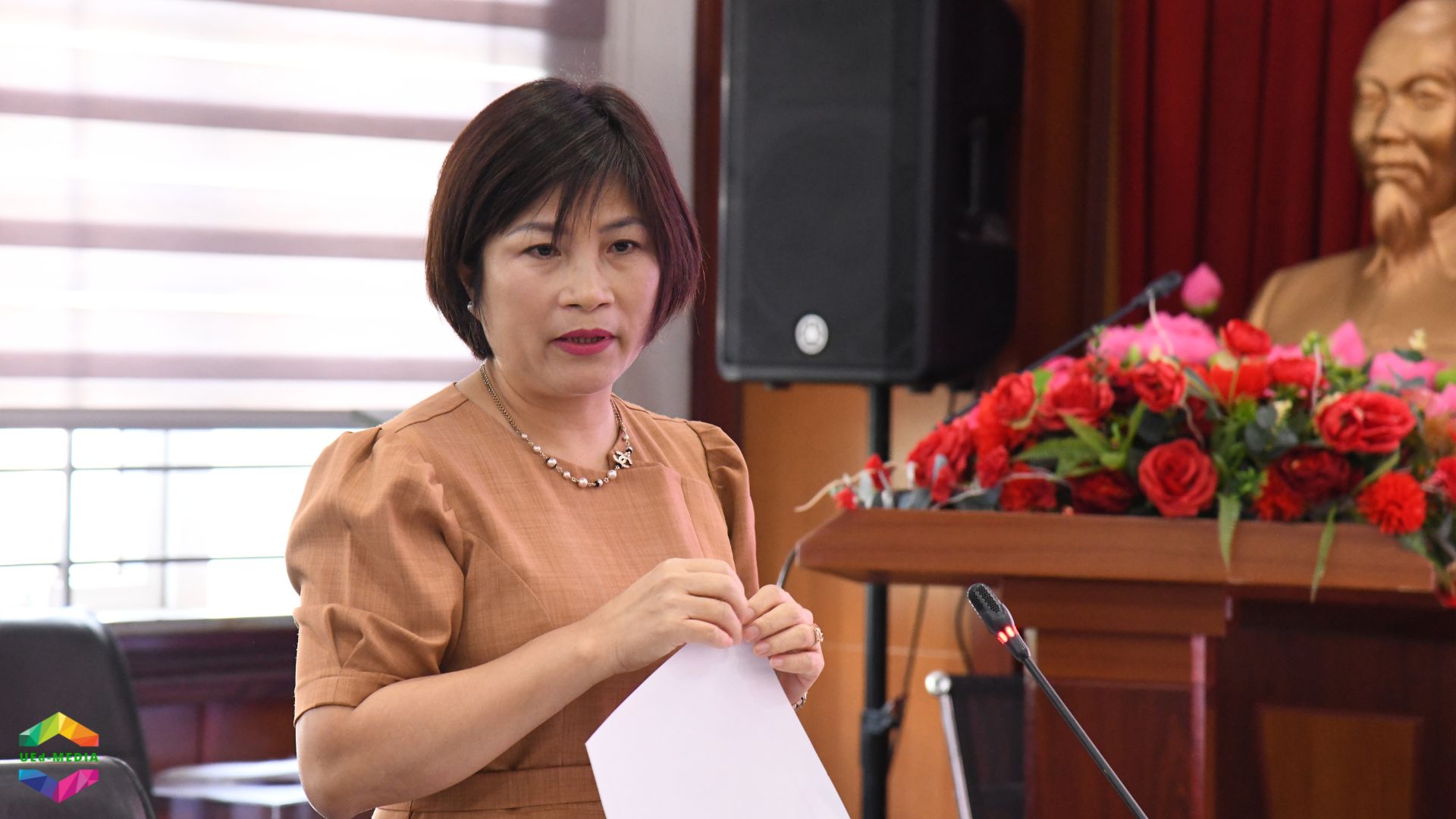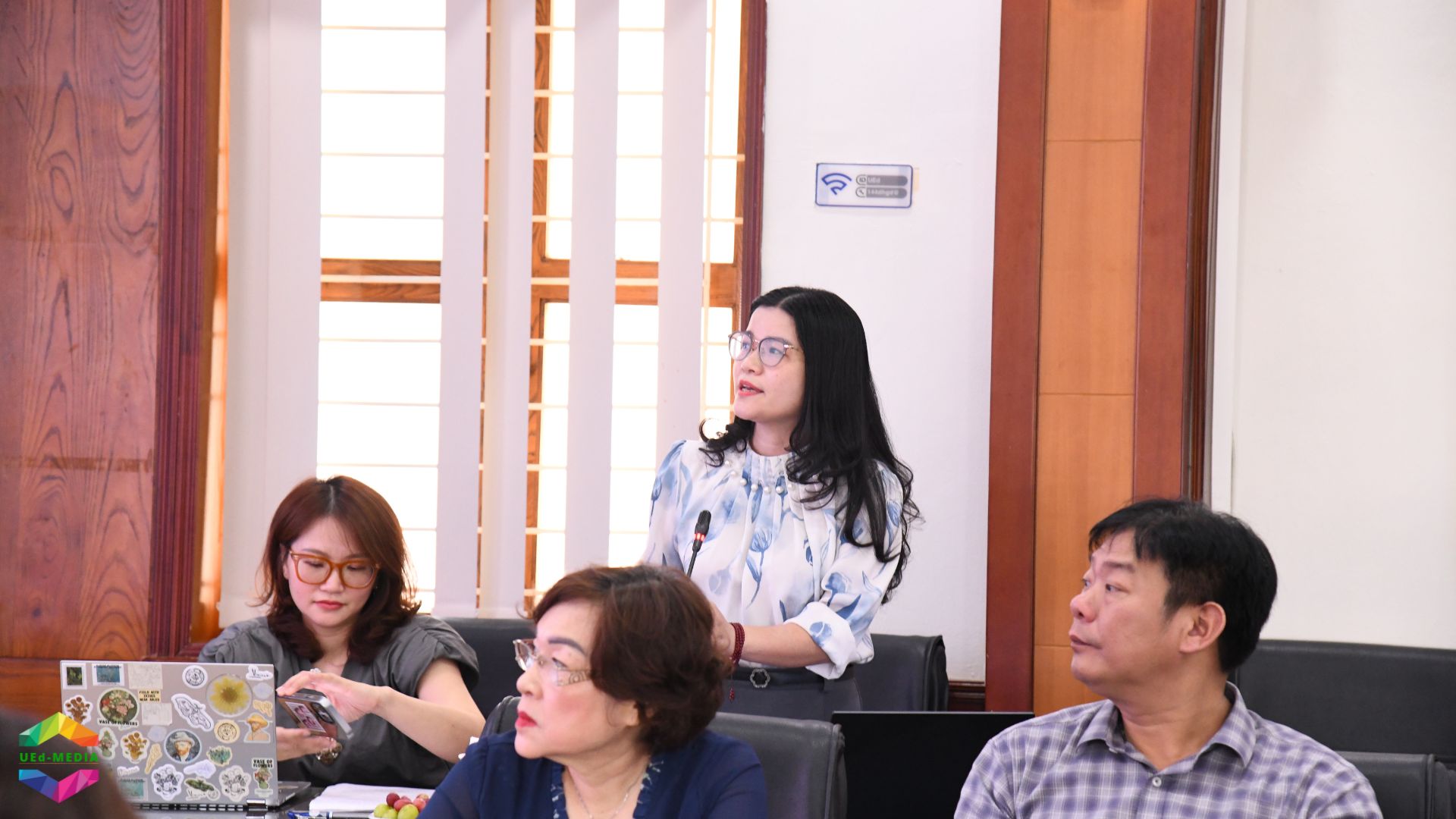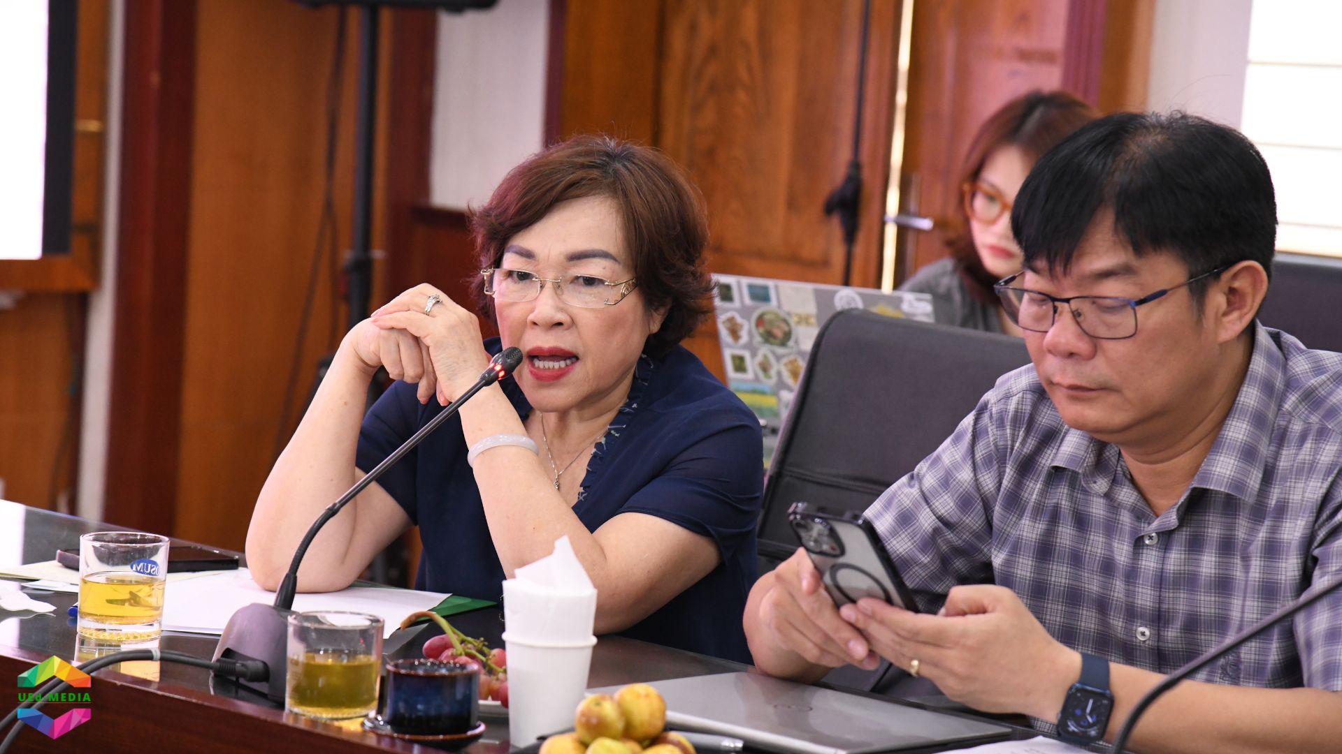 Trưởng phòng Tổ chức – Nhân sự, Thanh tra và Đảm bảo chất lượng TS. Nghiêm Thị Thanh trình bày Báo cáo điều chỉnh danh mục vị trí việc làm của Trường Đại học Giáo dục.