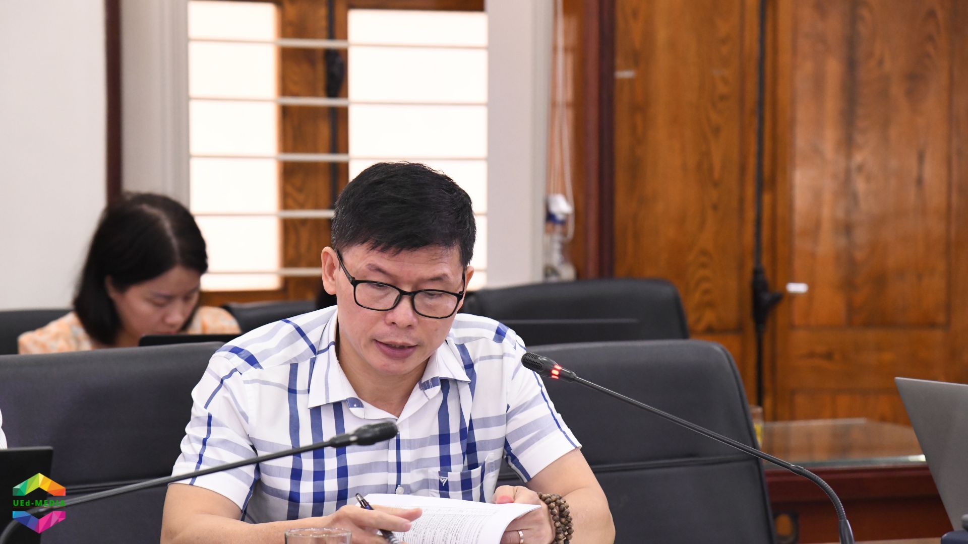 Tham dự phiên họp, về phía ĐHQGHN có Phó Giám đốc ĐHQGHN PGS.TS. Phạm Bảo Sơn đồng thời là thành viên Hội đồng Trường Đại học Giáo dục; Trưởng ban Tổ chức và Thanh tra TS. Đoàn Văn Cường.