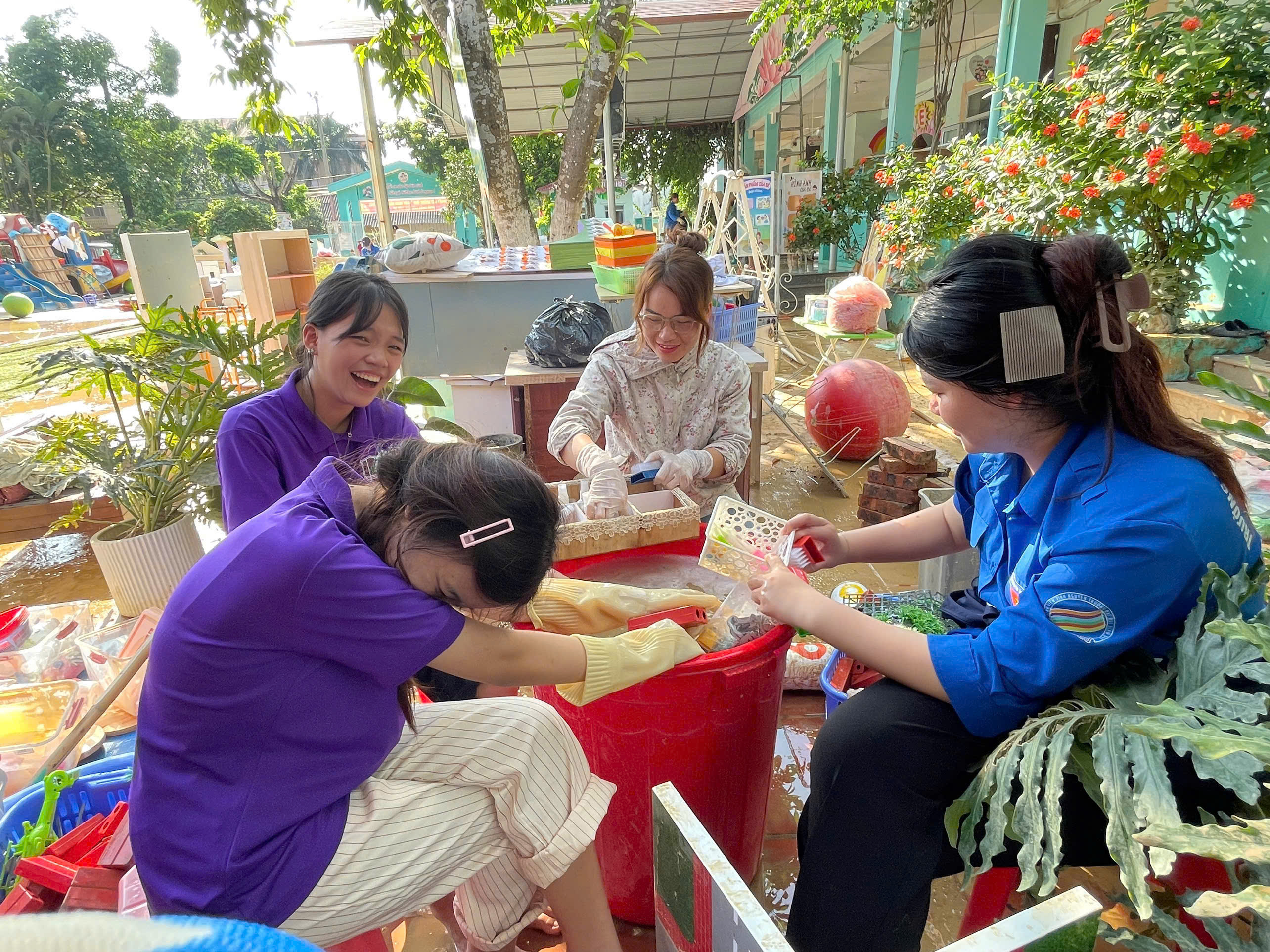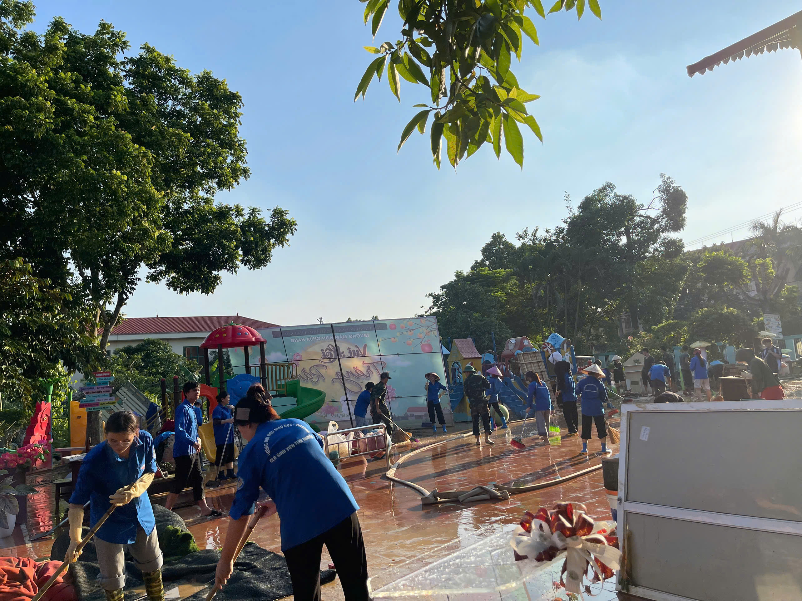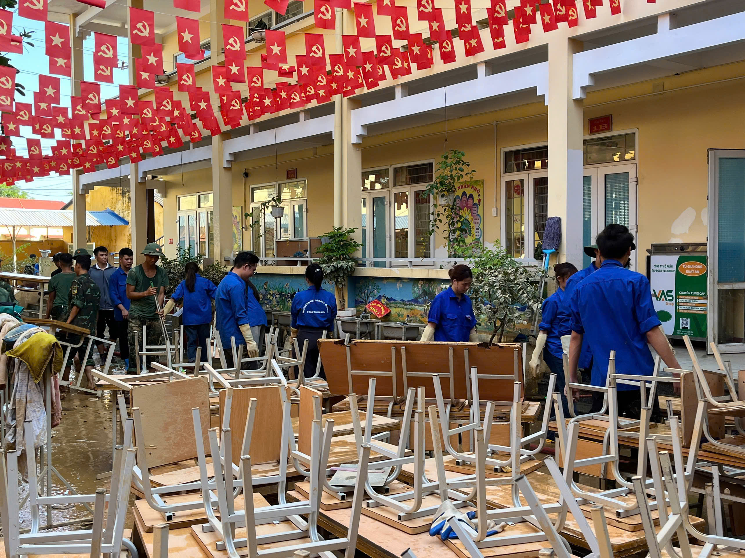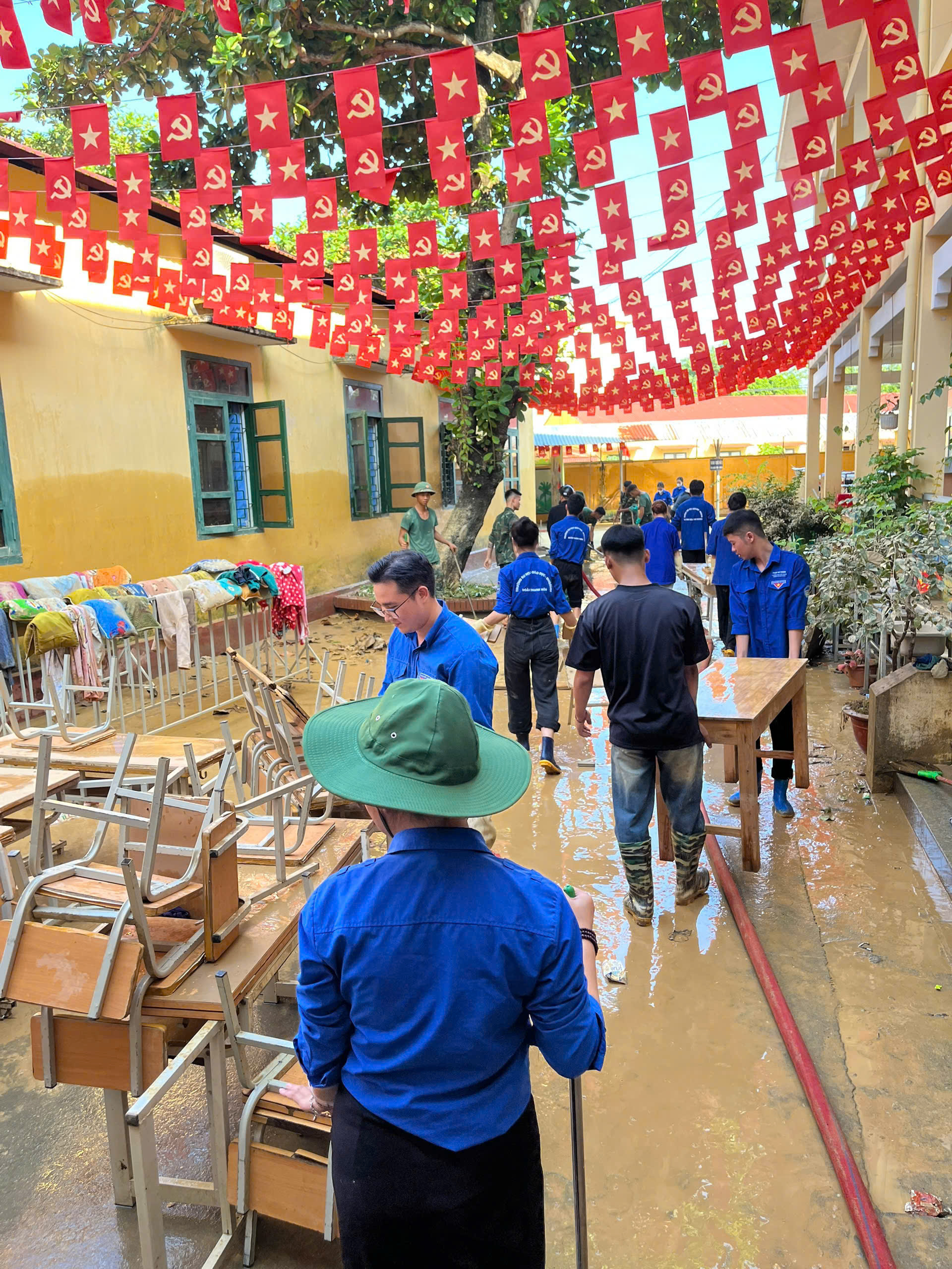 Với tinh thần xung kích, nhiệt huyết tuổi trẻ, các bạn sinh viên đã tham gia dọn dẹp bùn đất, thu gom rác thải, sửa sang lại nhà cửa, sắp xếp bàn ghế, sách vở, giúp các trường sớm ổn định công tác dạy và học. Không chỉ góp sức bằng hành động cụ thể, các đoàn viên thanh niên còn mang đến sự sẻ chia, động viên và tình cảm chân thành, ấm áp, tiếp thêm nghị lực cho người dân và học sinh nơi đây vượt qua khó khăn, mất mát sau thiên tai.