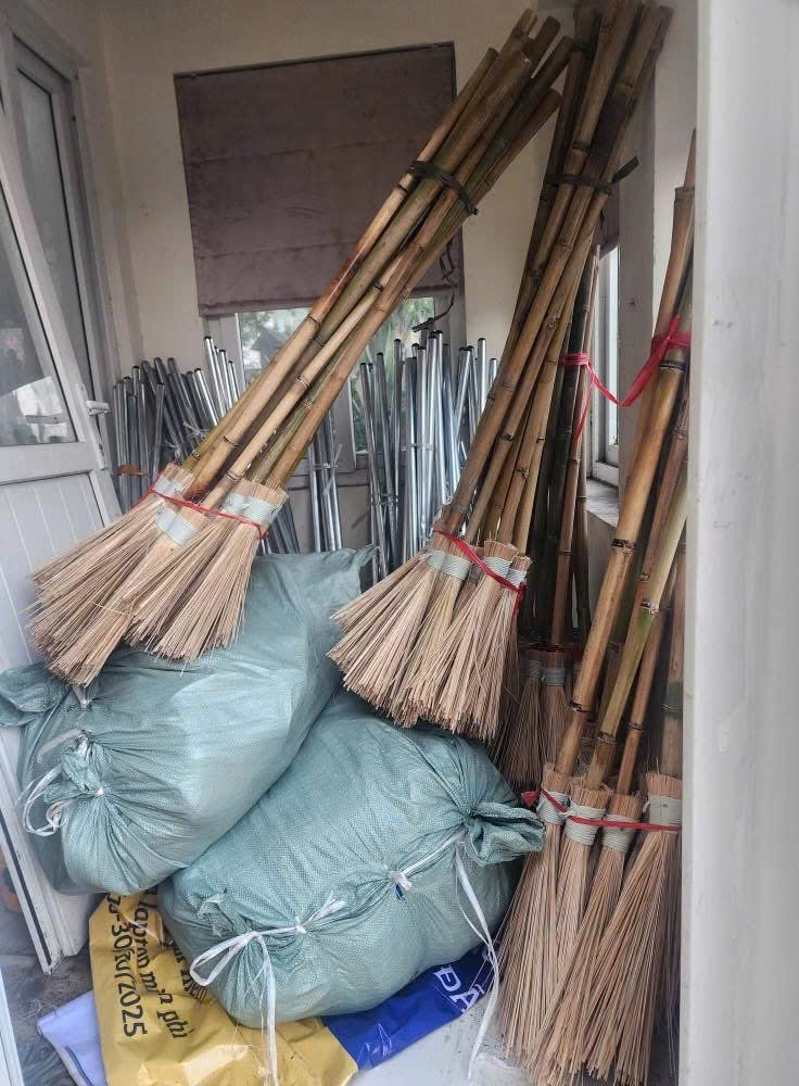 Các vật dụng phục vụ cho công tác dọn dẹp cùng các nhu yếu phẩm thiết yếu cho đoàn đã được chuẩn bị chu đáo.