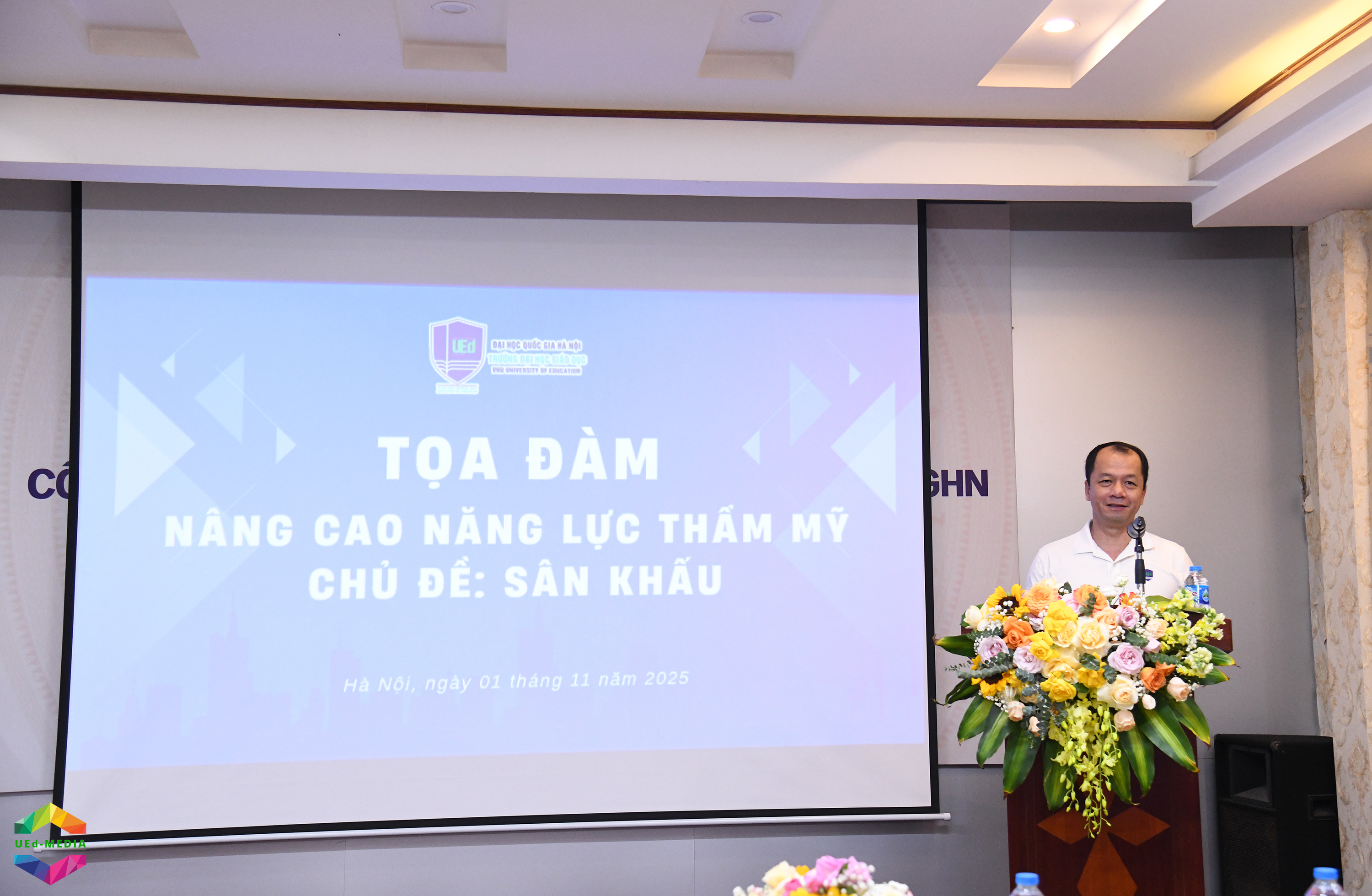Tọa đàm “Nâng cao năng lực thẩm mỹ chủ đề: Sân khấu” là một hoạt động nằm trong chuỗi chương trình nâng cao năng lực cho cán bộ, giảng viên và sinh viên Trường Đại học Giáo dục – ĐHQGHN, hướng tới mục tiêu bồi dưỡng năng lực cảm thụ, tư duy sáng tạo và tinh thần nhân văn, góp phần xây dựng môi trường giáo dục toàn diện, giàu bản sắc và sáng tạo.  |
