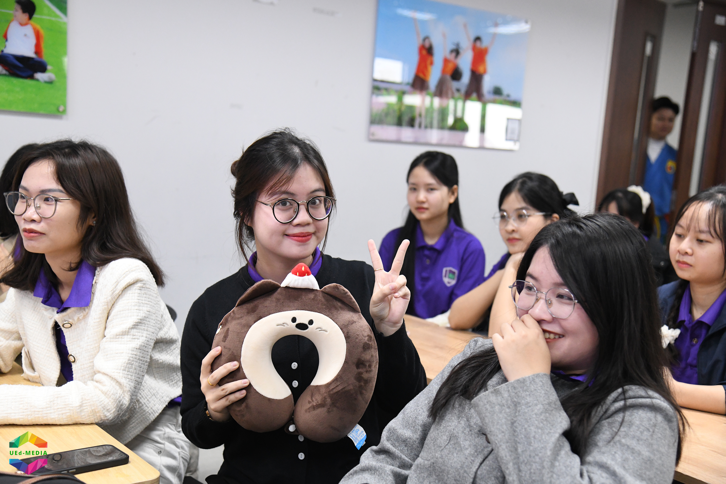 Các sinh viên hào hứng đặt câu hỏi ấn và nhận những phần quà ý nghĩa từ Trường TH, THCS & THPT Bắc Giang