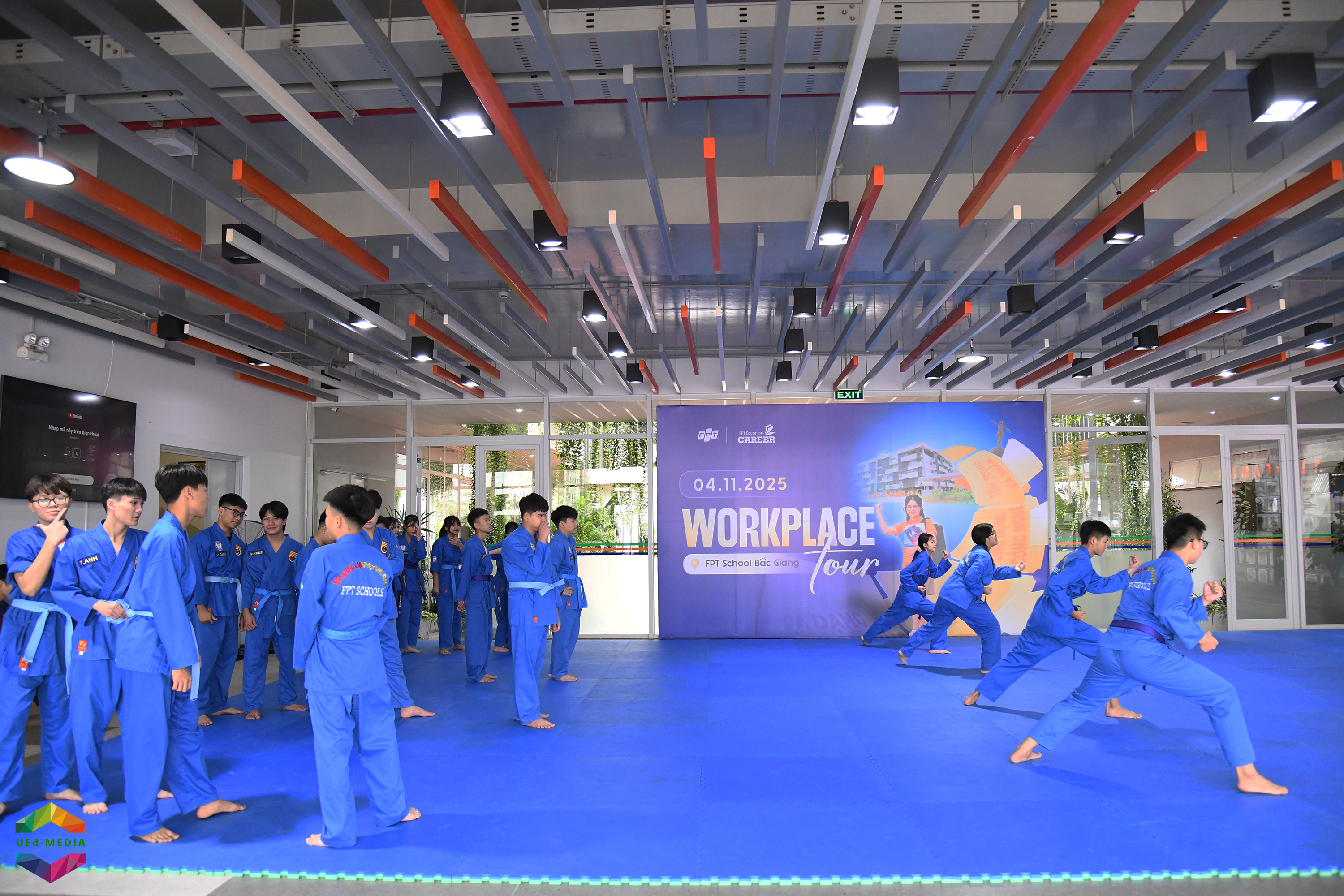 Sau phần giao lưu, đoàn sinh viên tham quan khuôn viên, lớp học và các không gian học tập của FPT School – Bắc Giang. Mô hình trường học hiện đại, lấy người học làm trung tâm, kết hợp chặt chẽ giữa học tập, trải nghiệm và phát triển kỹ năng mềm tại FPT School đã tạo ấn tượng cho tất cả sinh viên cũng như