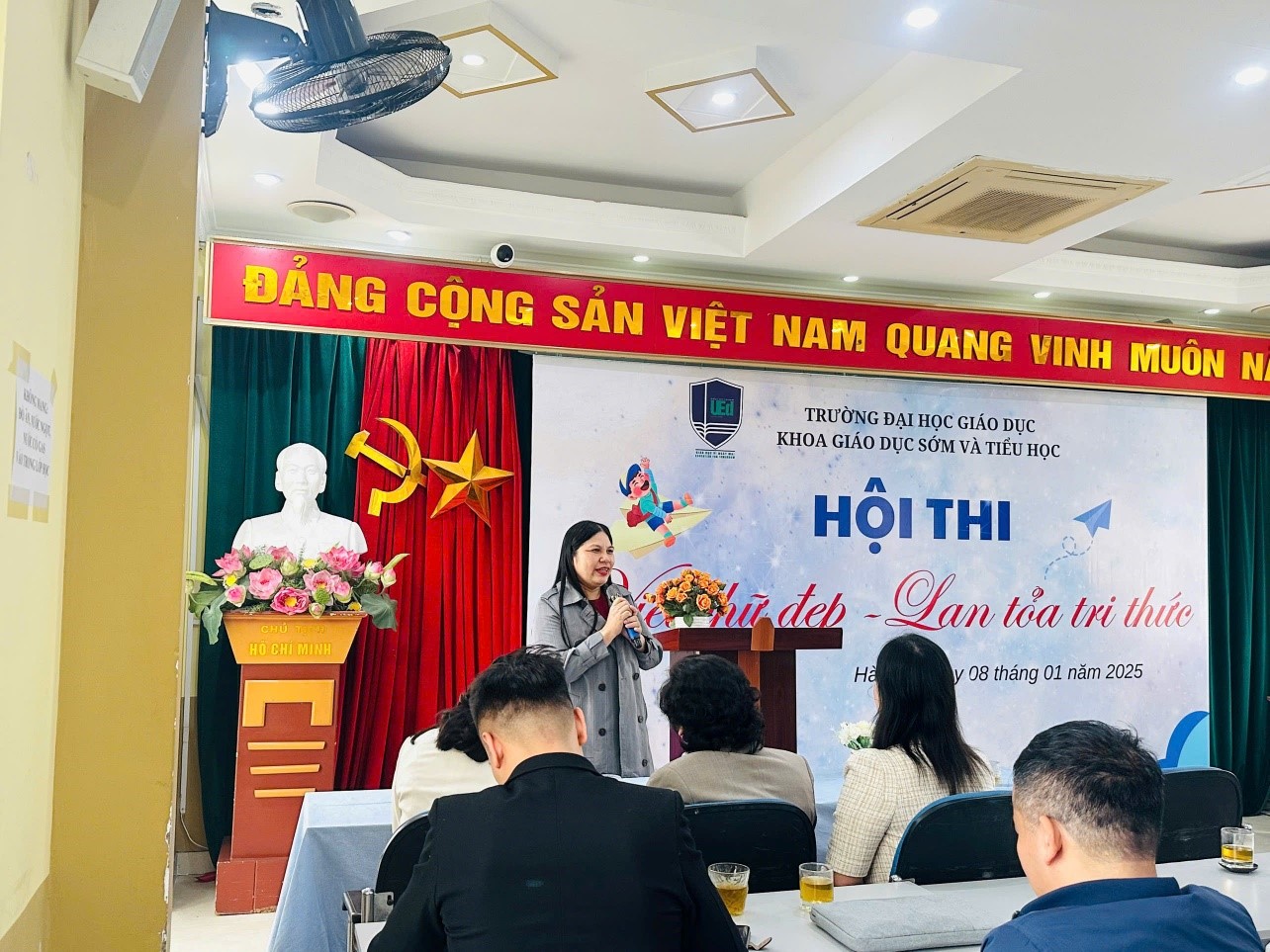 Phát biểu tại Hội thi, TS. Hoàng Thị Nho – Phó Trưởng Khoa GDS&TH nhấn mạnh Hội thi không chỉ tôn vinh nét đẹp chữ viết mà còn giúp sinh viên rèn luyện sự kiên trì, cẩn thận – những phẩm chất quan trọng của một nhà giáo. Đồng thời, TS. Hoàng Thị Nho gửi lời chúc đến các thí sinh, mong rằng các em sẽ tự tin, bình tĩnh và đạt kết quả cao nhất.