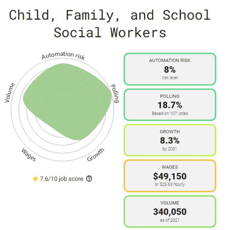 Vị trí việc làm sau tốt nghiệp của hướng ngành này là chuyên viên công tác xã hội học đường tại hệ thống các trường học, bệnh viện, trung tâm bảo trợ xã hội. Trở thành chuyên viên công tác xã hội làm việc tại các tổ chức phi lợi nhuận hoặc các cơ quan chính phủ liên quan đến giáo dục.