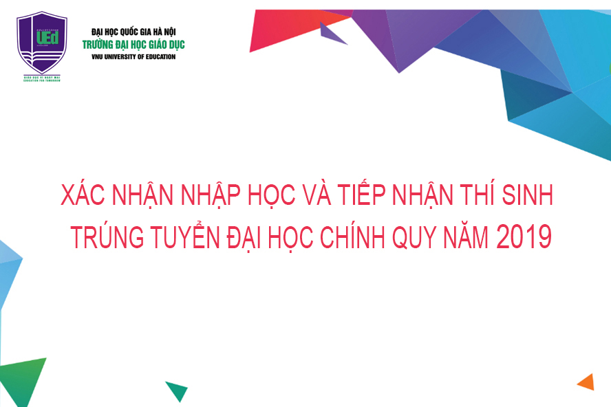 Thí sinh tra cứu Danh sách trúng tuyển tại website của Trường (http://education.vnu.edu.vn) và Đại học Quốc gia Hà Nội (http://vnu.edu.vn) từ ngày 09/08/2019 và làm thủ tục xác nhận nhập học theo hai bước sau: