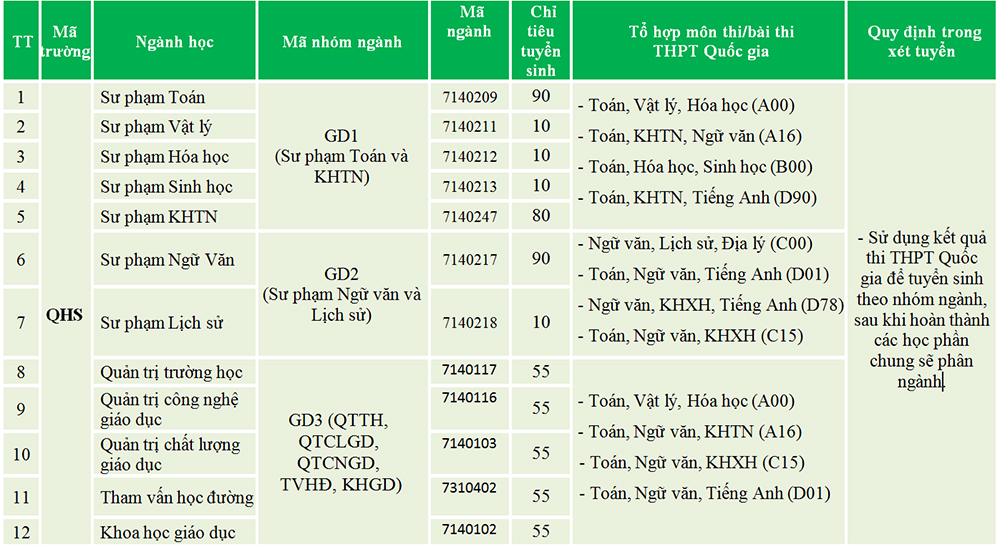Thông tin tuyển sinh đại học chính quy năm 2019 của Trường Đại học Giáo dục - ĐHQGHN