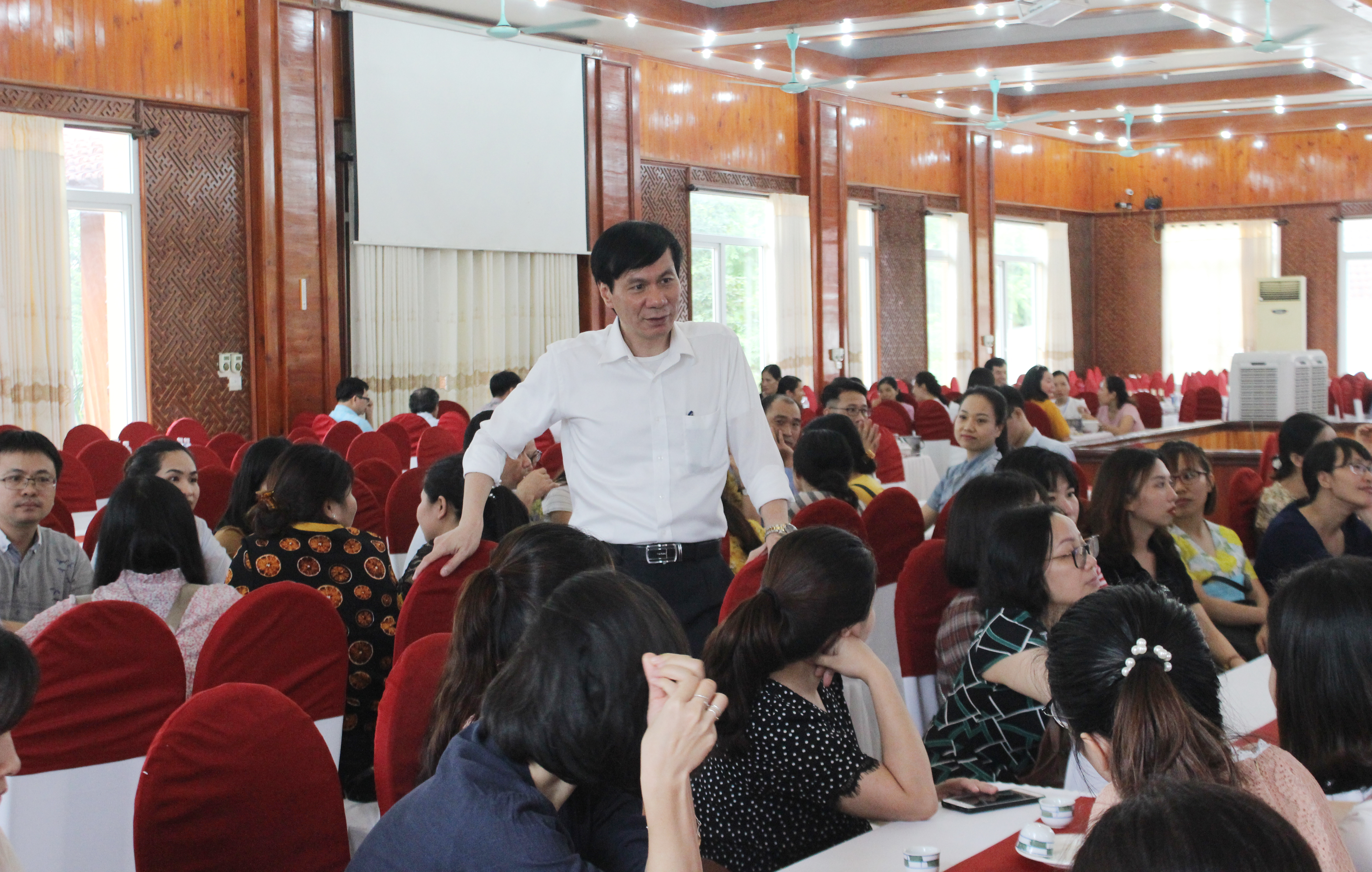 Để đảm bảo tốt cho Kỳ thi THPT Quốc gia năm 2019, trước khi kỳ thi diễn ra 02 ngày, trường ĐH Giáo dục đã tổ chức tập huấn triển khai hướng dẫn công tác coi thi, làm nhiệm vụ thi cho các cán bộ coi thi, giám sát.