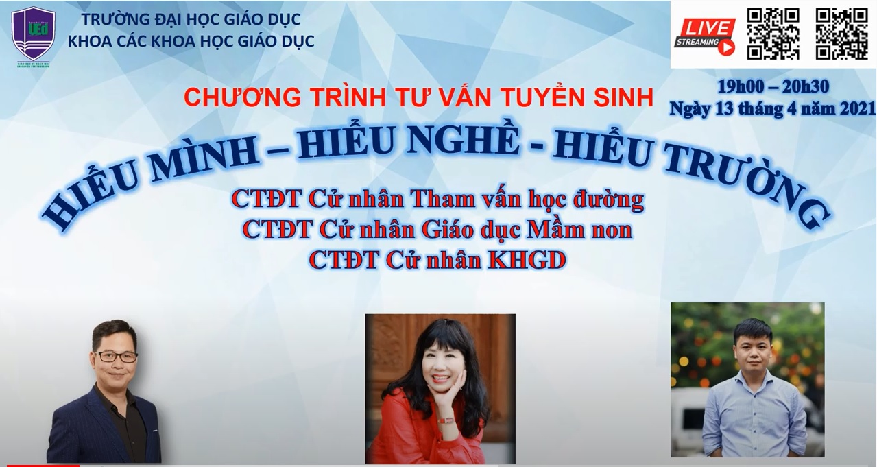 Quý Phụ huynh và học sinh quan tâm tới các chương trình đào tạo của Trường ĐH Giáo dục có thể xem chi tiết tổng hợp các Video tư vấn tuyển sinh các ngành đào tạo dưới đây: