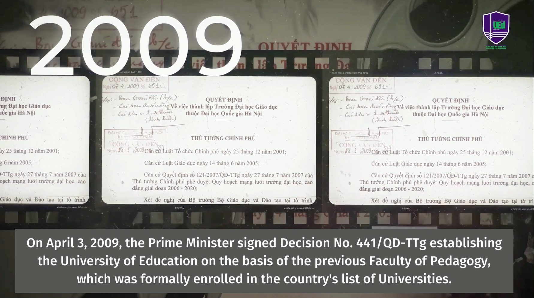 Để ghi nhận và phát triển mô hình đào tạo tiên tiến, Thủ tướng Chính phủ đã ký Quyết định số 441/QĐ-TTg, ngày 03 tháng 4 năm 2009 thành lập Trường Đại học Giáo dục trên cơ sở Khoa Sư phạm. Trường Đại học Giáo dục đã trở thành đại học thành viên thứ 6 trong ngôi nhà chung ĐHQGHN.