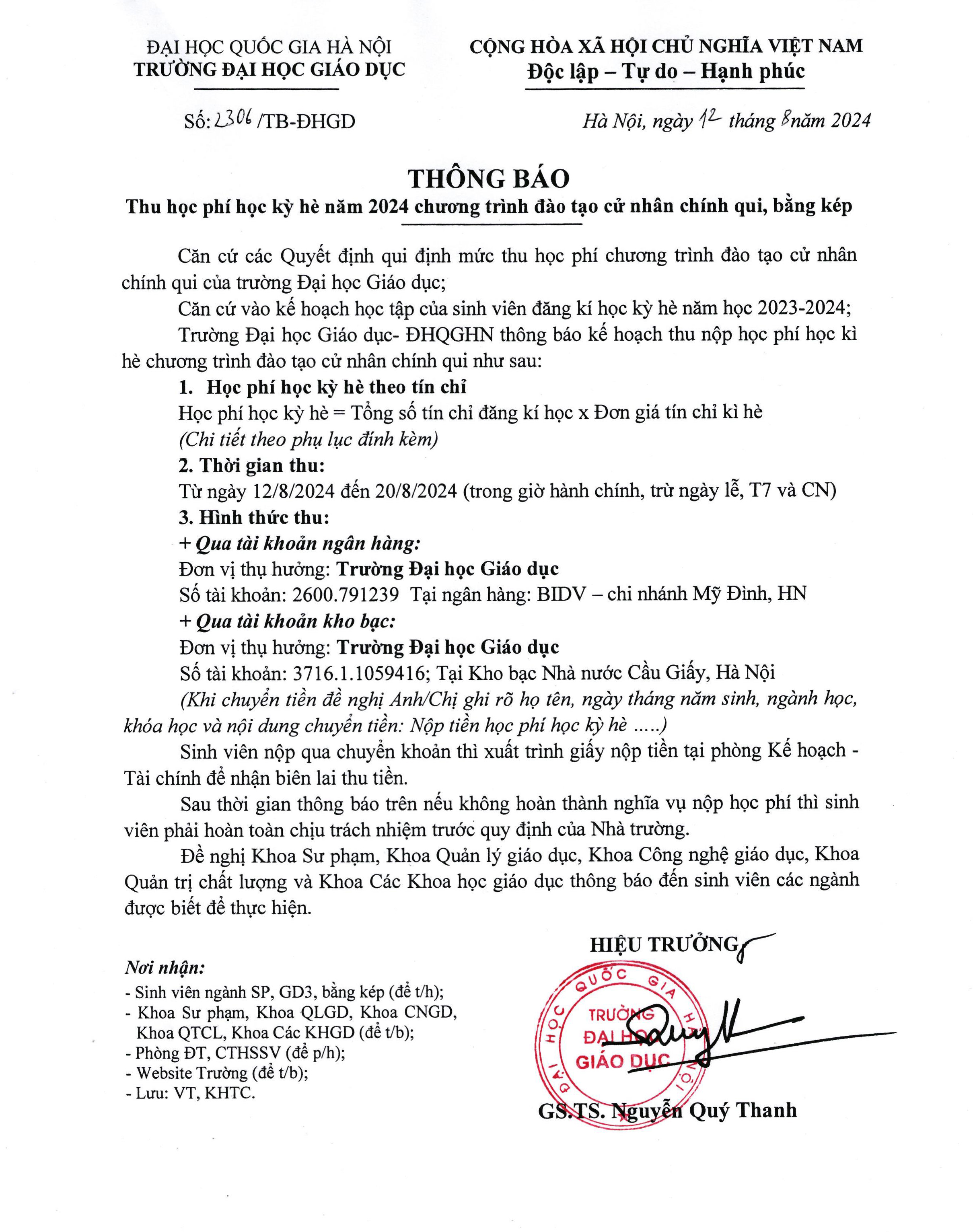 >>> Danh sách sinh viên khoá QH2022 nộp học phí kì hè năm 2024