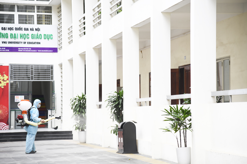 Ngoài hoạt động tổng vệ sinh khu vực giảng đường, Trường Đại học Giáo dục đã chuẩn bị: 2000 khẩu trang vải kháng khuẩn để phát miễn phí cho sinh viên; trang bị gần 100 chai nước sát khuẩn khô (trong đó có 40 chai do ĐHQGHN tài trợ) để tại các khu vực lớp học.