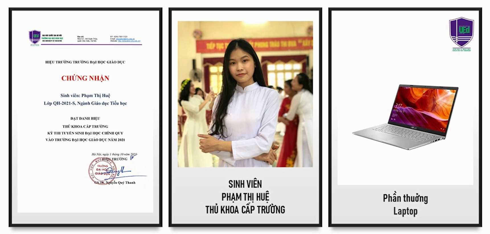 Phạm Thị Huệ - tân sinh viên khoá QH-2021-S, ngành Giáo dục Tiểu học - Thủ Khoa Trường năm 2021