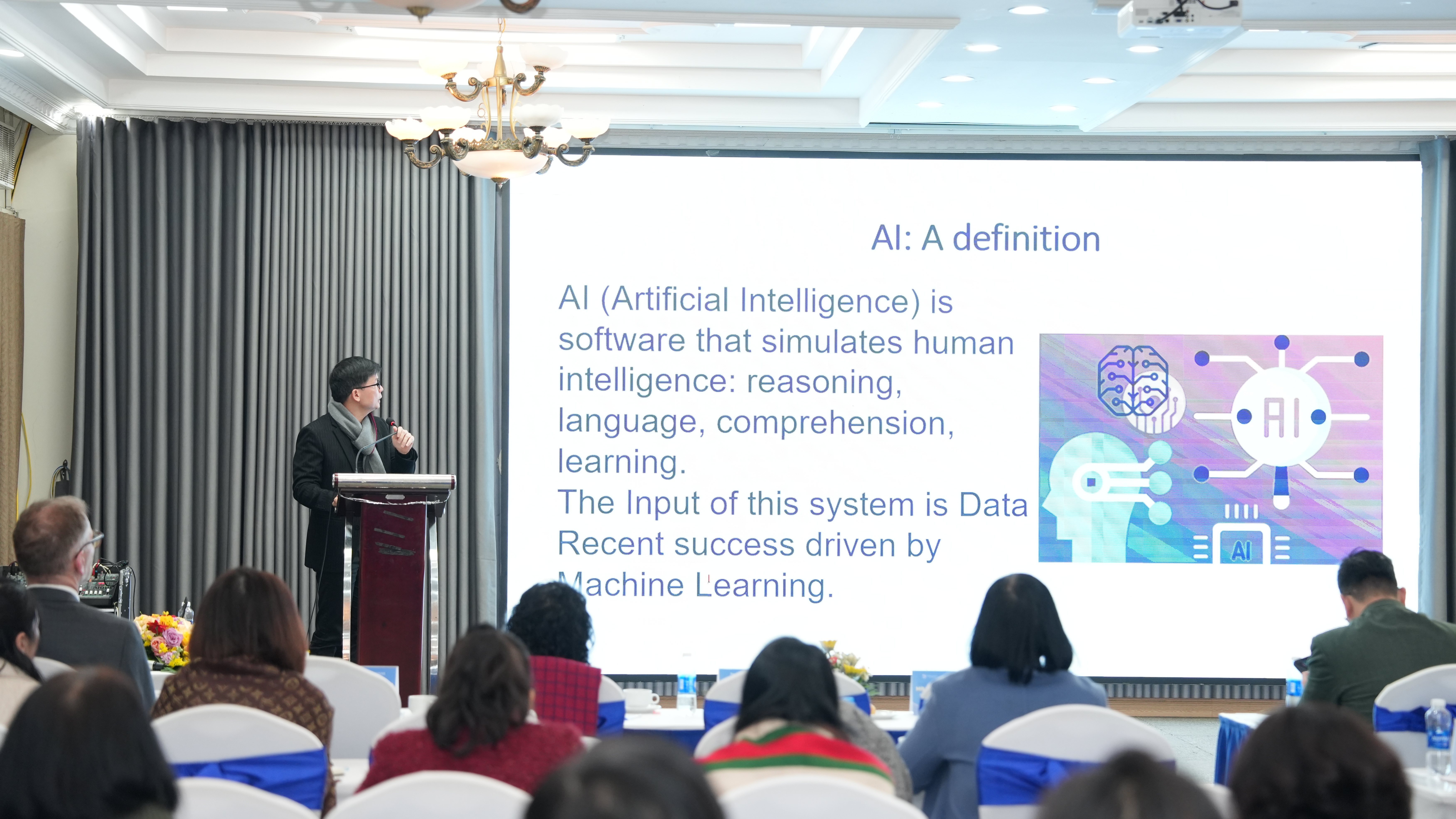 Ở góc độ giáo dục và công nghệ, PGS.TS. Nguyễn Chí Thành nhấn mạnh mục tiêu của giáo dục trong kỷ nguyên AI cần chuyển từ đào tạo kỹ năng sang phát triển “trí tuệ nhân văn”. Trước nguy cơ lệ thuộc công nghệ làm suy giảm tư duy phản biện và sáng tạo, PGS.TS. Nguyễn Chí Thành đề xuất chuyển từ “học để biết” sang “học cách học”, từ “con người đối đầu AI” sang “con người cộng tác cùng AI”. Mô hình giáo dục AI tại Việt Nam được định hướng theo cách tiếp cận lấy con người làm trung tâm, gắn với đạo đức, trách nhiệm xã hội và năng lực giải quyết vấn đề thực tiễn.