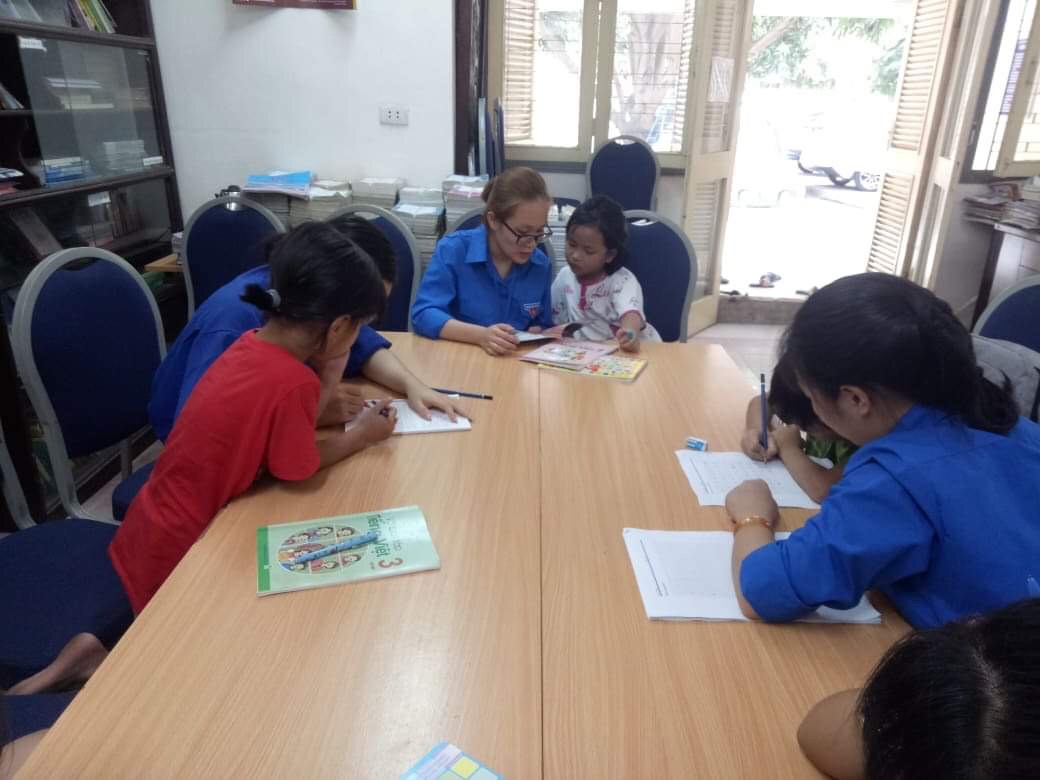 Các bạn TNV đọc sách cho các em nhỏ sau giờ học