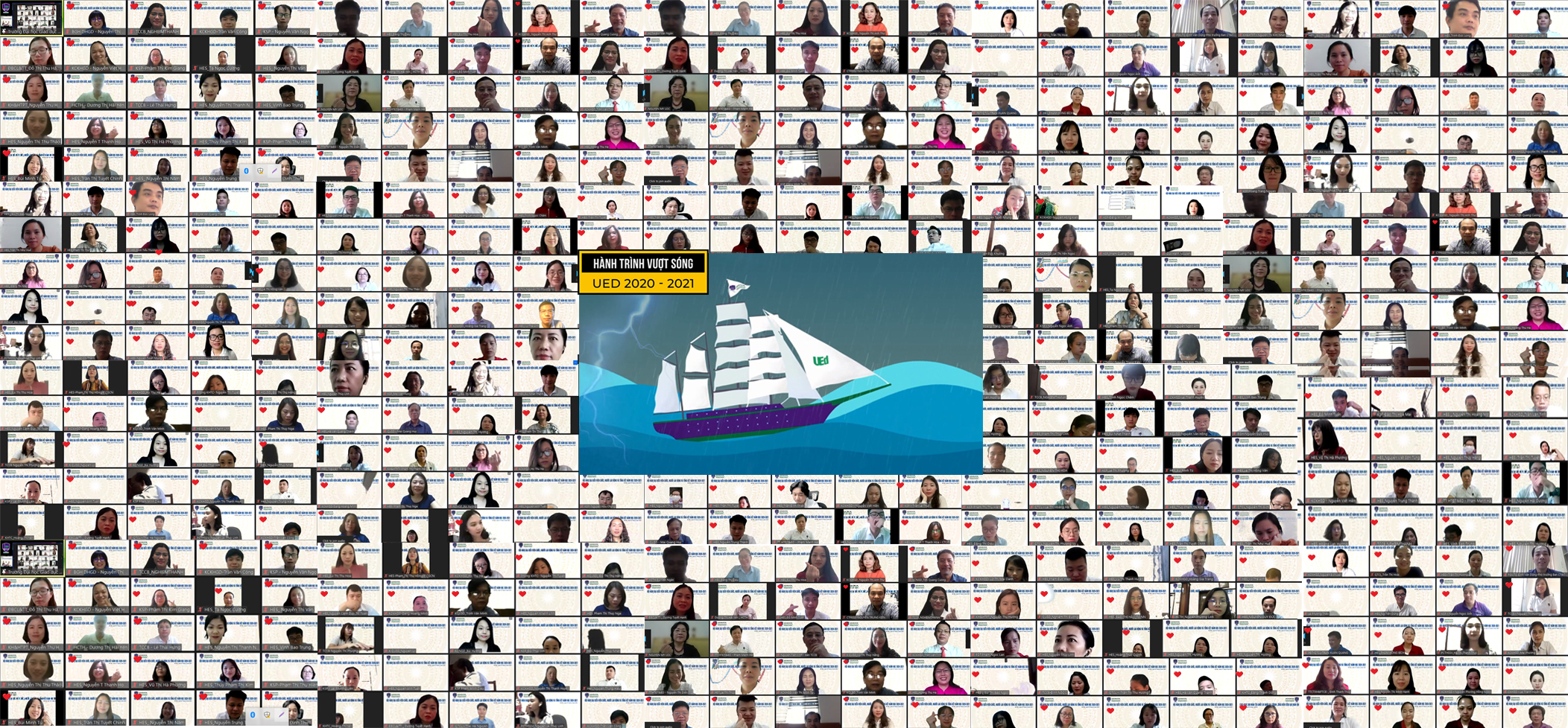 Video “Hành trình vượt sóng UEd 2020-2021” là hình ảnh con thuyền ĐH Giáo dục vượt sóng, vượt gió để hoàn thành sứ mệnh ở “8 hòn đảo” tượng trưng cho kết quả ở các lĩnh vực: Tuyển sinh và Đào tạo; Đảm bảo chất lượng; Công tác cán bộ; Khoa học và hợp tác phát triển; Chuyển đổi số; Công tác học sinh sinh viên; Quản lý cơ sở vật chất và tài chính; Các Thành tích và thi đua khen thưởng.