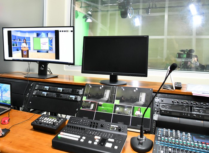 Trường đang có 1 phòng Studio để hỗ trợ giảng viên, sinh viên thực hiện các project, các bài giảng được đầu tư chuyên nghiệp. Ảnh: UEd Media