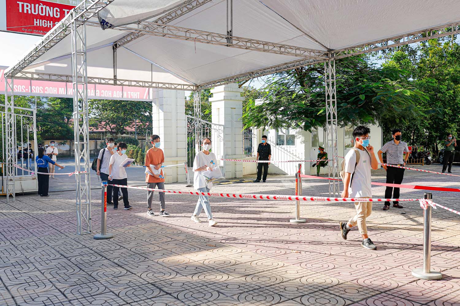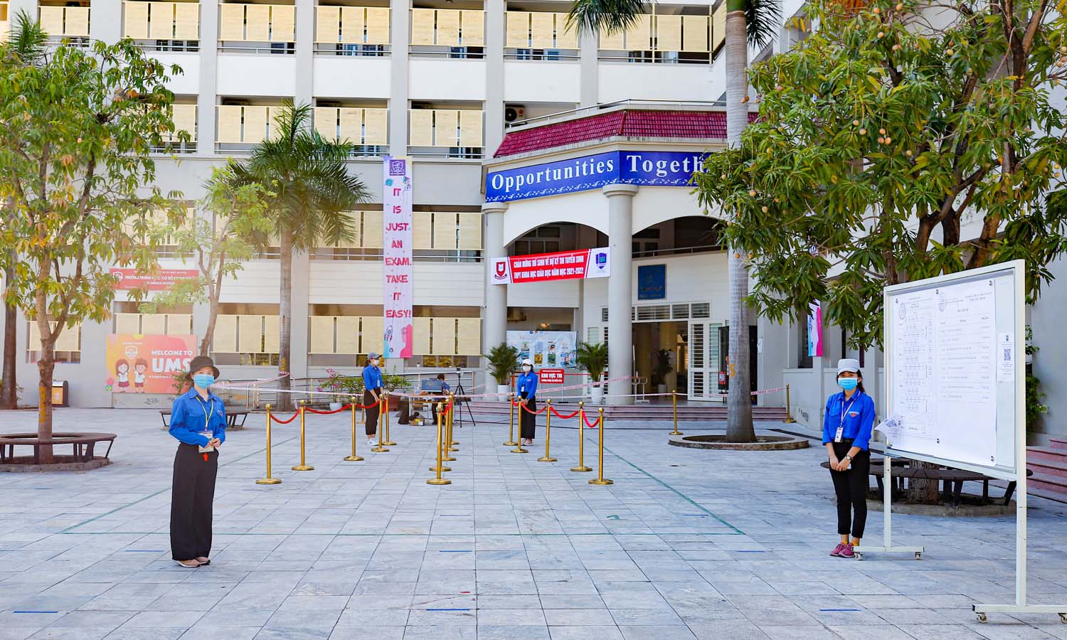 Tại điểm thi bố trí máy đo thân nhiệt, cán bộ y tế, lực lượng tình nguyện, giám sát và hướng dẫn thí sinh tuân thủ các phương án phòng dịch